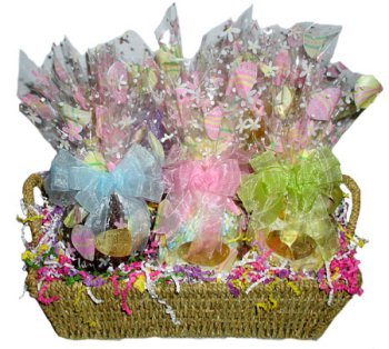 We have taken 6 of our best selling apples and created smaller versions of them and dressed them up for Easter to make up The Perfect Easter Apple Basket. This collection of decadent chocolate caramel apples with assorted toppings make an excellent dinner party gift, corporate gift or any other occasion. Unlike other makers of chocolate apples we believe a chocolate apple should have a thick, delicious layer of creamy caramel and triple thick layer of chocolate rather than using oversized apples and a thin layer of chocolate. This one will leave them begging for more!