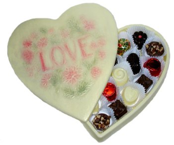 A romantic favorite! This solid Sugar Free Belgian chocolate heart shaped box is filled with an assortment of our finest handmade chocolates making up over 2lb of delicious chocolate such as Cherry Fondants, Marshmallow Creme's, White Chocolate Enrobed Hawaiian Macadamia nuts, Creme de Menthe, Key Lime, Creamy Caramels and beyond this gift makes an extra special treat for your Valentine.